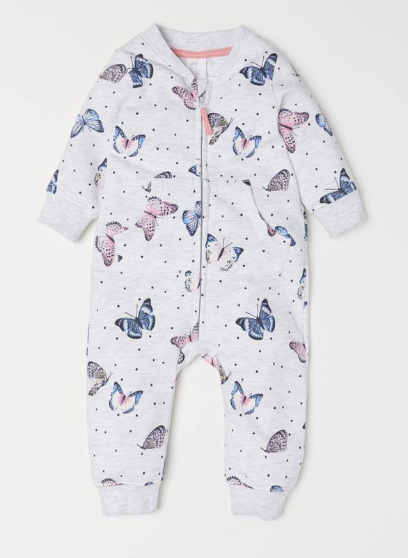 Комбинезон из легкого футера с принтом бабочки, на молнии, с карманами. Трикотажная резинка манжет снизу и на рукавах. Подойдет как для прогулок, так и для дома. Цвет: светло-серый меланж В наличии размеры: 98 (2-3г) и 104 (3-4г) большемерят. Замеры на 98: плечи - 24,5; по ог 31; рукав от плеча - 34; длинна 90см. На 104: плечи - 25; по ог 33; рукав от плеча - 36; длинна 94см. Состав: Хлопок 61%, полиестер 39% Изготовлен в Турции.