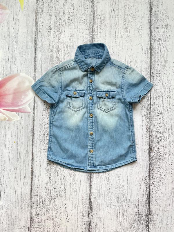 Крута джинсова сорочка теніска футболка Primark 12-18міс, легкий джинс, заміри на фото