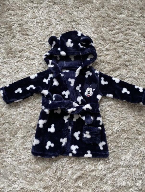 Халатик в идеальном состоянии. Плюшевый, очень приятный, как раз для нежной детской кожи. Фирменный, будет гораздо дольше, мы одевали до года.