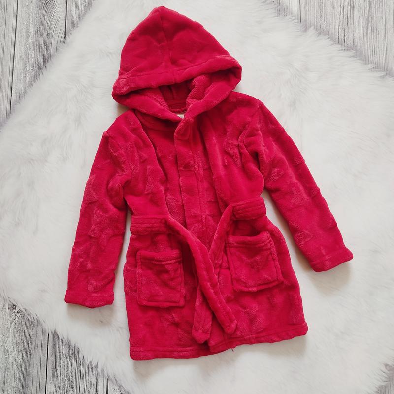 Плюшевий халатик в зірки Primark,18-24 міс, насичений червоний колір,стан відмінний,довжина 46см,рук від шиї 39см