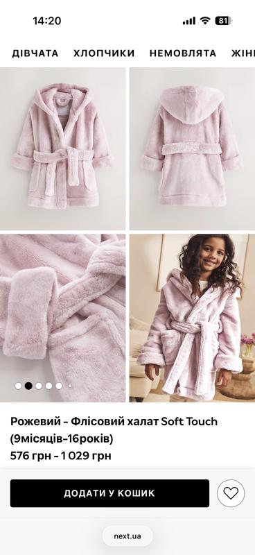Продам халат фірми Next в ідеальному стані, підійде на 86-92. Дуже мʼякий, теплий і плюшевий, приємний до тіла. Заходьте до мене на сторінку дивіться інші товари.
