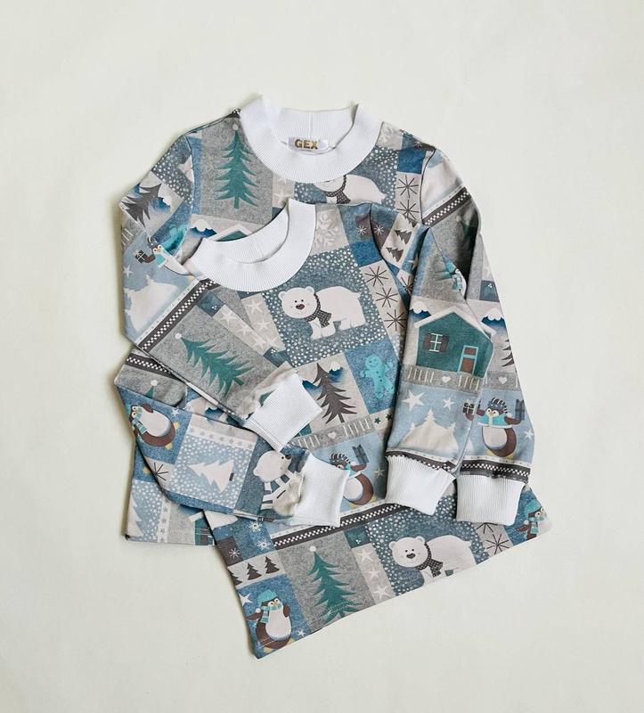 Очень милый и веселый свитшот с белыми мишками. Ткань двухнитка на байке., 95% сотоn. Очень хорошего качества В наличии размеры: рост 98, 104 110, 116, 122