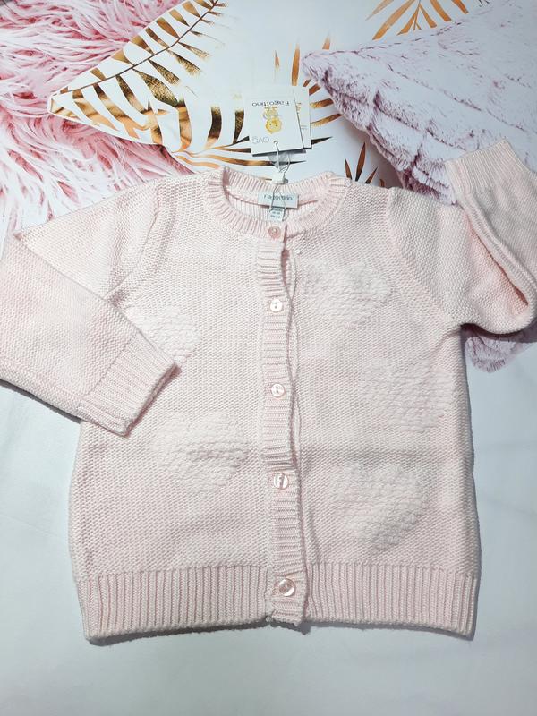 дуже ніжна, м'яка і приємна до тіла кофтинка. Виглядає дуже ніжно і миленько😍😍. Якість відмінна, що відповідає відомому бренду. Ширина плечей 19 см ПОГ 28 см Довжина 33 см Довжина рукавчика 30 см