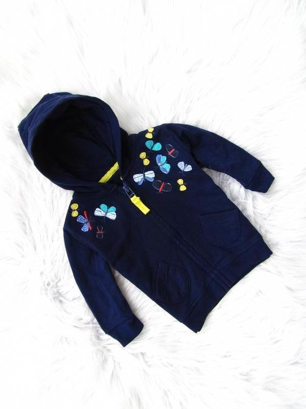 ✔Кофта бомбер худи с капюшоном Marks & Spencer. Спереди застегивается на молнию и вышит рисунок. Качество на высоте . ✔ Состояние -ИДЕАЛЬНОЕ ✔Размеры: 0-3 мес (56-62 см) Длина -29 см, ширина -26 см рукав от плеча― 21 см.