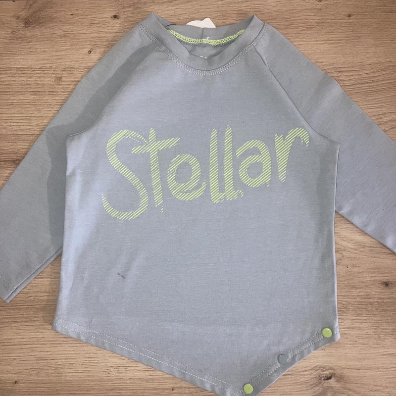 Состав: 95% – хлопок, 5% – эластан; Цвет – серый Размер – 80 Есть маленькое пятенце (на фото видно), поэтому цена снижена Цена – 80 грн
