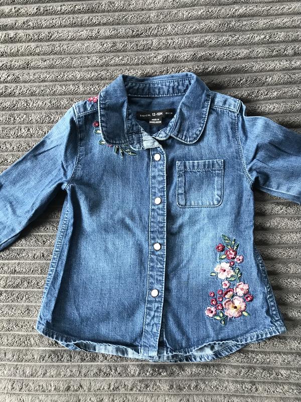 Джинсовая рубашка для девочки. Стан - идеальный. Длина 33 см, по спинке 37 см ОГ 27 см Цена 150 грн.