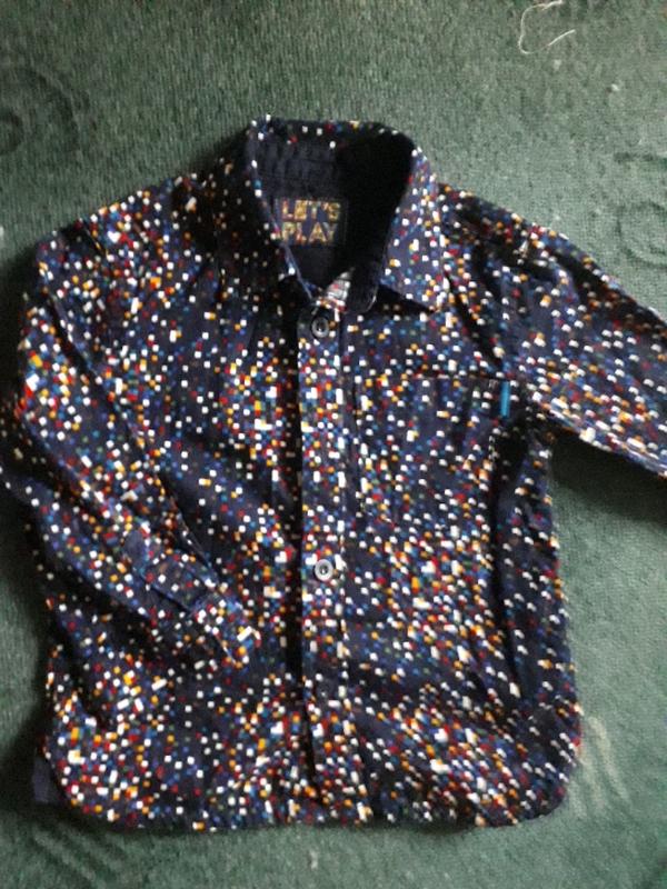 модная рубашка в идеальном состоянии, состояние новой вещи. На мальчика 1.5- 2 лет. Длина по спинке 37см, пог 30см, длина рукава от плеча 30 см.