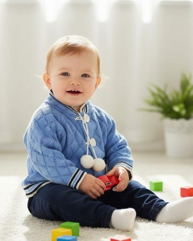 Кофта дитяча 12-18 міс Сезонність: Демісезонність Матеріал: В'язка Склад: Акріл100% Розмірна сітка: 86 Колір: синій