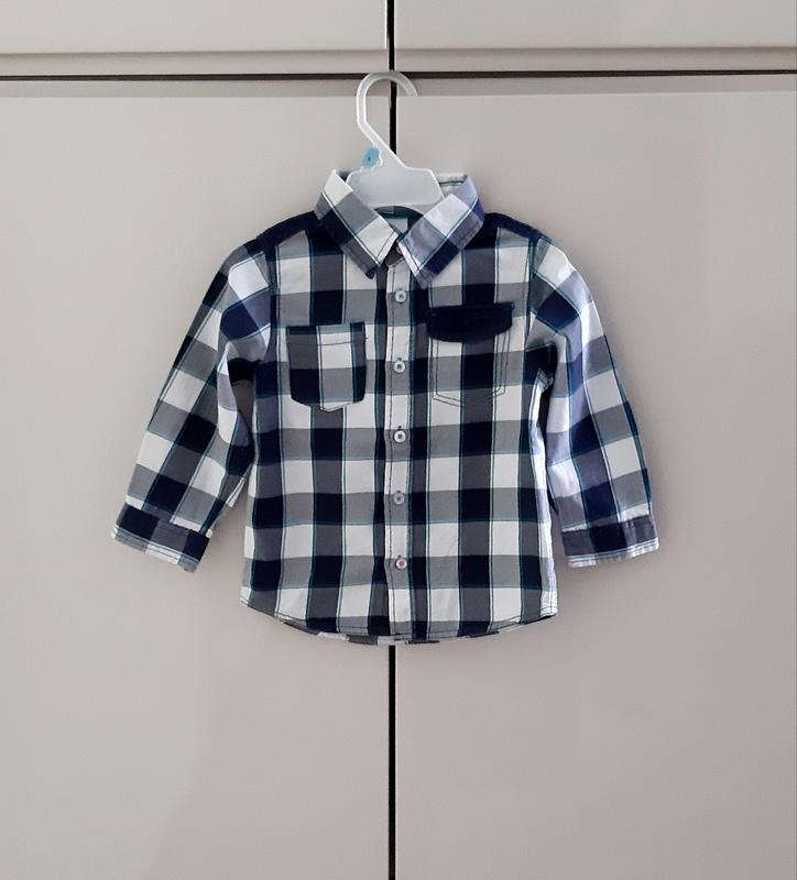 Стильна сорочка C&A baby club розмір вказано 86. Заміри сорочки: довжина - 35-36см. ПОГ - 30см. рукав - 29см. плечі - 24см. Стан ідеальний. ☝️Відправлення укр. і новою поштою по 100% передоплаті на картку Приват Банку, якщо відправлення укр. поштою, то ще +5 грн. до суми за пакування.