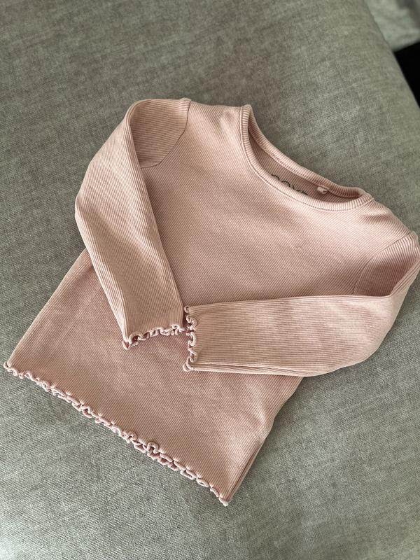 Лонгслів з 100% бавовни, з гарно обробленими краями. Є невеличка затяжка з переду.