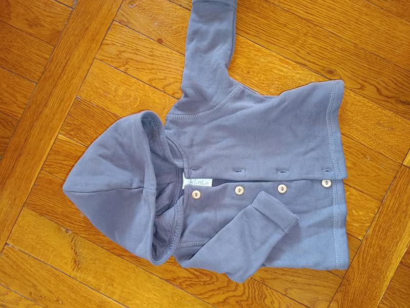 Сіренька тепла кофтинка на гудзиках з капішоном для наймолодших. Додаткові фото при потребі надсилаю в приватні повідомлення.