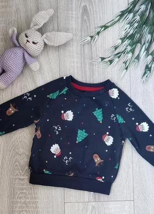 праздничный новогодний свитшот малышей унисекс 6-9 месяцев, щуст указан 74см ткань с небольшим утеплением очень стильный, сверху для удобства есть кнопки состояние идеальное, как новая вещь