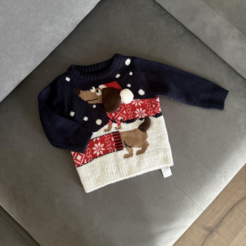 Класна новорічна кофта фірми F&F. На вік 12-18 місяців. Довжина 40,5 см, плечі 24 см, рукав 31 см. Є 2 шт