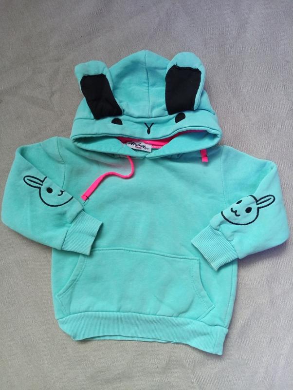 Світшот не такий яскравий як на фото ,трохи втрачений колір, є пляма невеличка спереду, на фото не видно. ПОГ 30 см Рукав 29 см Довжина 32