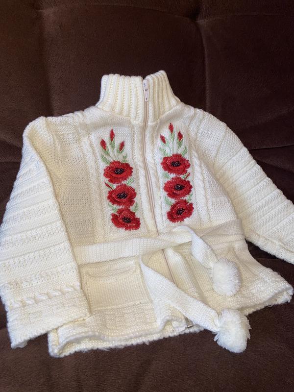 Тепла кофтинка для дівчинки Колір молочний Довжина 34см Рукавчик від плеча 28см