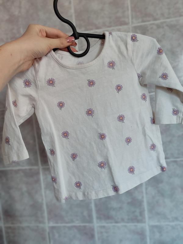 Дитяча кофточка (лонгслів) на дівчинку, білого кольору в квіточки, в гарному стані, розмір 6-9 місяців трішки можна довше, якщо потрібні заміри запитуйте.