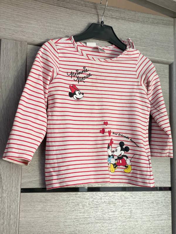 Мінімальне замовлення у продавця на 100 грн. Дуже класної якості білий джемпер у червону смужку Disney на дитину 12-18 місяців. Є цятки на грудях, виводити не пробувала. Довжина виробу зі спинки 33 см, ПОГ 29 см, довжина рукава 28 см. Модель 2819