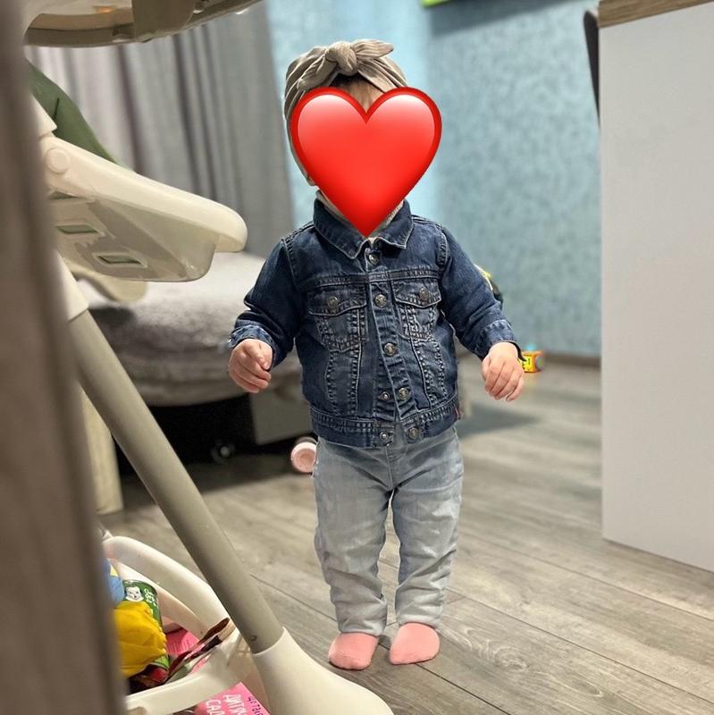 Продам джинсову кофту для дівчинки в ідеальному стані)Розмір 63 на 3 місяці,але буде і набільше