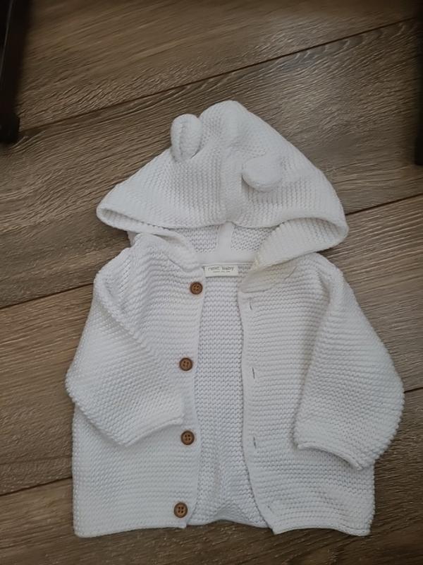 Кофточа nex bsby, 0-1 56см. Біла з капішоном і дерев'яними гудзиками