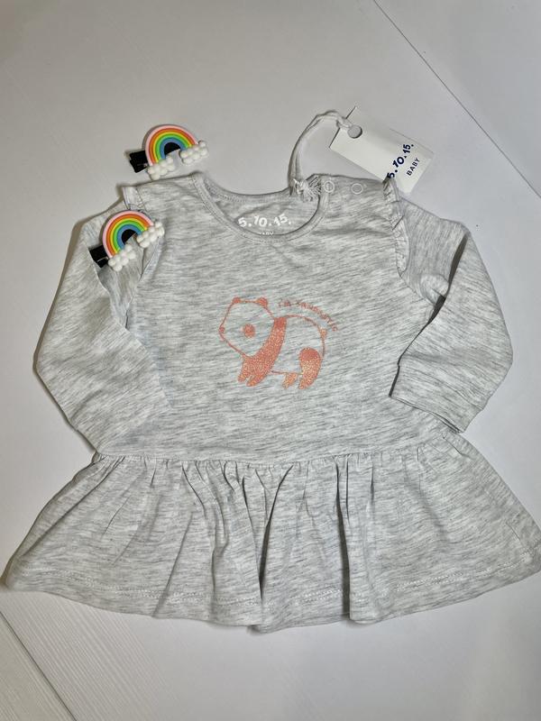 Ніжна кофтинка для дівчинки з блискучим ведмедиком, світло сірий колір, розмір 62, бренд 5.10.15 Заміри Довжина рукава від плеча - 20,5 см Ширина під руками - 25 см Довжина від плеча - 32 см