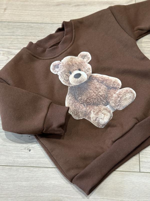 Світшот утеплений з ведмедиком неймовірної якості. Дуже мʼякий та приємний на дотик. Виробник зазначає китайський 73 розмір:) Але по факту це щось середнє між 74 та 80.
