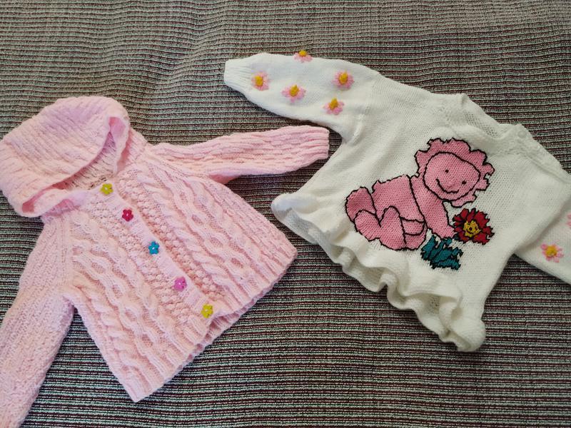 Тип одягу: Кофти Кофтинки в ідеальному стані. Розмір не вказаний, йдуть десь на 6-12 місяці. Якщо треба померяю. 60 грн.за дві