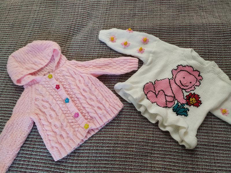 Тип одягу: Кофти Кофтинки в ідеальному стані. Розмір не вказаний,йдуть десь на 6-12 місяці. Якщо треба померяю. 60 грн.за дві