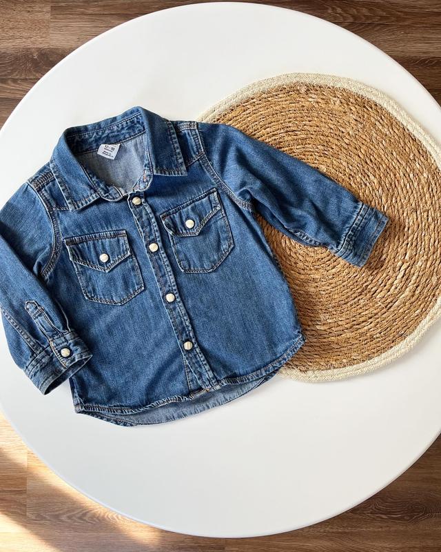 Джинсова сорочка Gap ▫️стан нової, одягали декілька разів ▫️розмір 86 (12-18 міс) Довжина 36 см, рукав 28 см