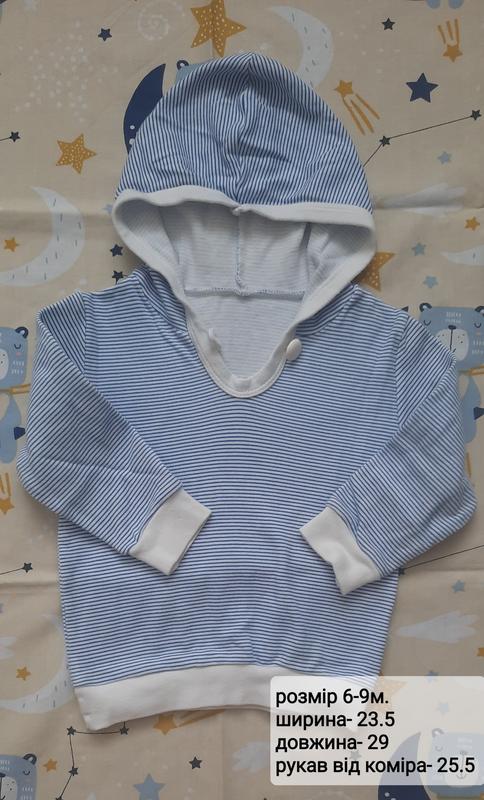 6-9 мес. ширина 23.5 длина 29 рукав от воротника 25.5
