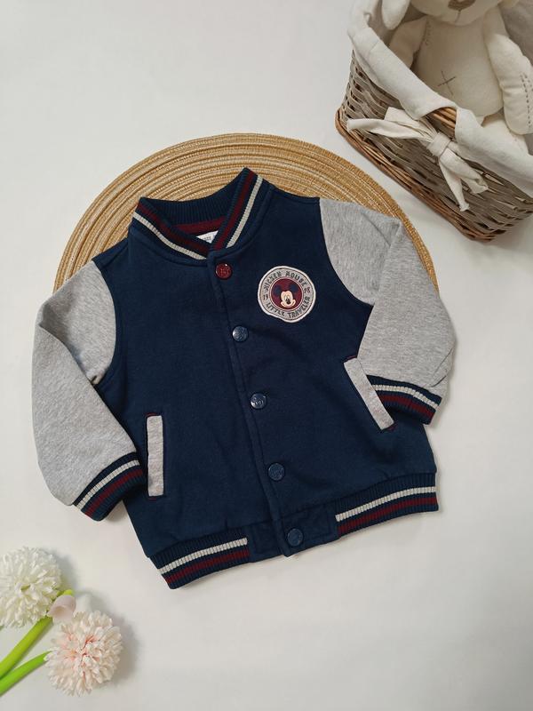 Дуже крутий та стильний бомбер на хлопчика.Стан відмінний,трішки утеплений флісом.Розмір 74