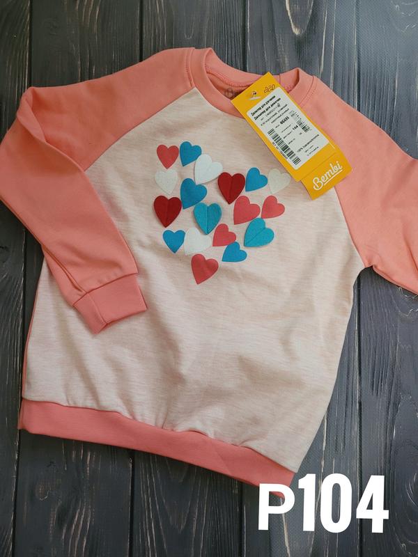 Реглан детский, для девочки р 104, коралловый с сердечками, тм бемби