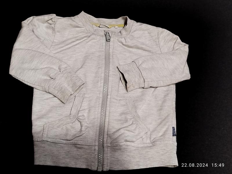 Мінімальне замовлення у продавця на 100 грн. Симпатична кофточка світло-сірого кольору у відмінному стані на дитину 9-12 місяців. Довжина виробу по спинці від плеча 35 см, напівобхват грудей 31 см, довжина рукава 29 см. Тканина 80% бавовна 20% поліестер, тягнеться. Модель 4565Т