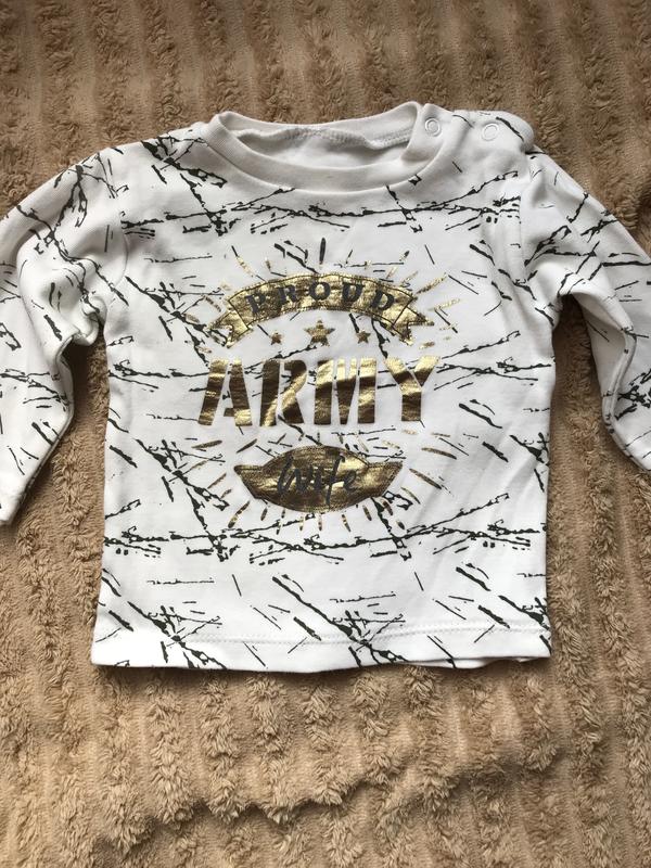 кофта для хлопчика на вік 3-9м,заміри надаю,цікавий принт,приємний матеріал до тіла,є сліди носіння,якщо хочете можете вивести пляму,надпис на кофті -золоті літери,на горловині є застібки.на сторінці є ще і інший товар