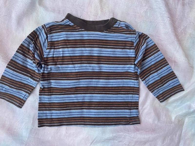 Реглан George, р.80, блакитно-коричнева смужка, довжина 29,5 см, плечі 24 см, довжина рукава 21,5 см, ПОГ 27 см. МІНІМАЛЬНА СУМА ЗАМОВЛЕННЯ ДЛЯ ВІДПРАВКИ - 100 ГРН. Так як політика сайту зараз - комісія за продаж 15% для товарів до 1000 грн, але не менше 15 грн. Розвантажую шафу, речі моїх дітей, якщо потрібні додаткові фото, пишіть.