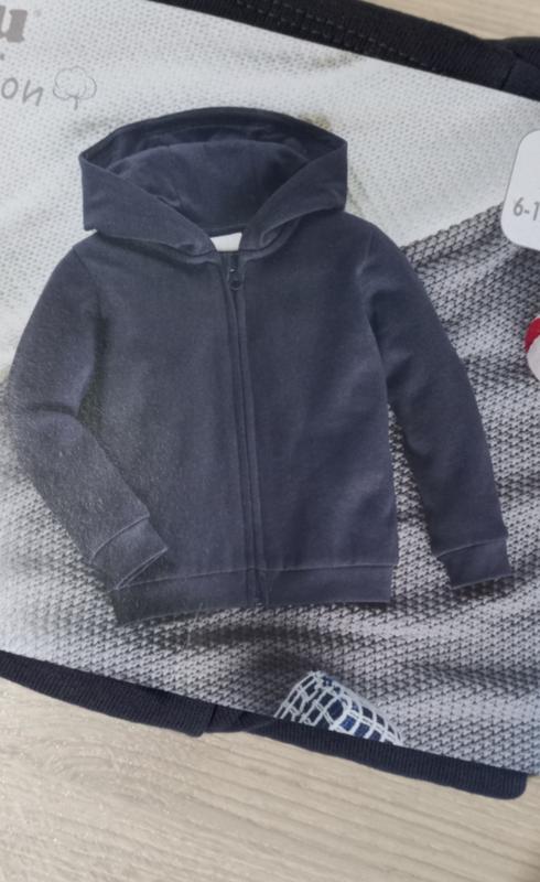 Нова кофтинка на молнії з капюшоном на хлопчика, з колекції Lupilu Pure Collection. Колір темно синій. Розмір 74/80 або 6-12 місяців. Утеплена тоненьким флісом. В упаковці.