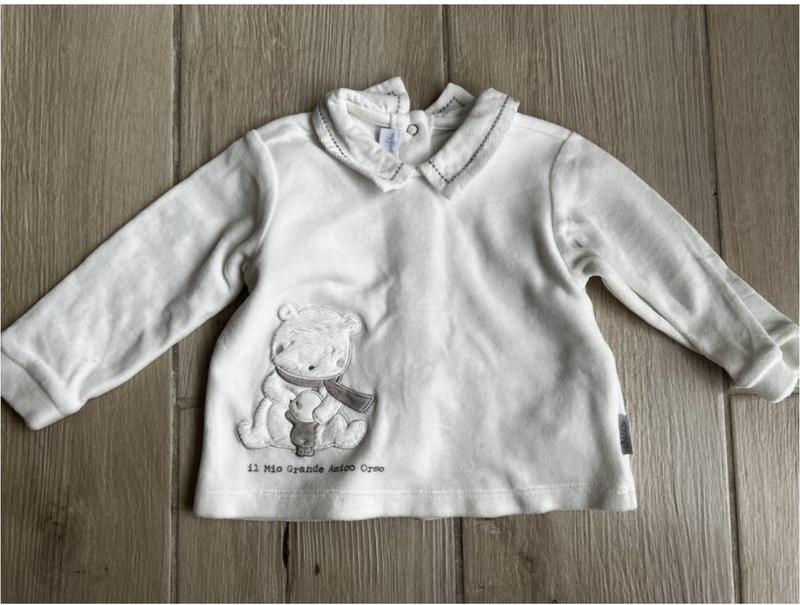 Велюрові кофтинка фірми Chicco, вказан розмір 9 міс , но буде раніше, так як маломірять … десь на 3-6 міс. Мʼяка і приємна на дотик