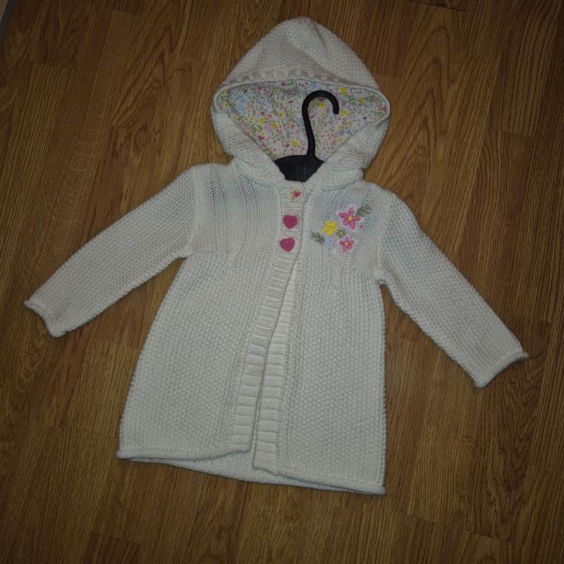 утепленная беленькая кофта в идеальном состоянии без дефектов и нюансов на размер 80-86 см, 12-24мис, состояние новой вещи, одит один раз.