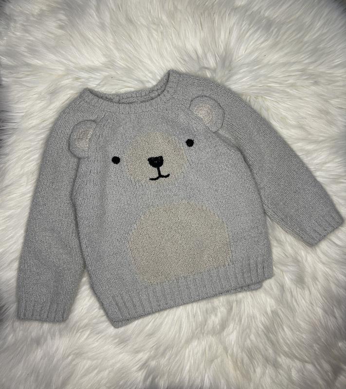 Мʼякий і приємний теплий светрик з ведмедиком Next, стан ідеальний на вік 12-18 місяців Заміри: Довжина - 35, по спинці - 37см Півобхват- 35 Рукав - 29