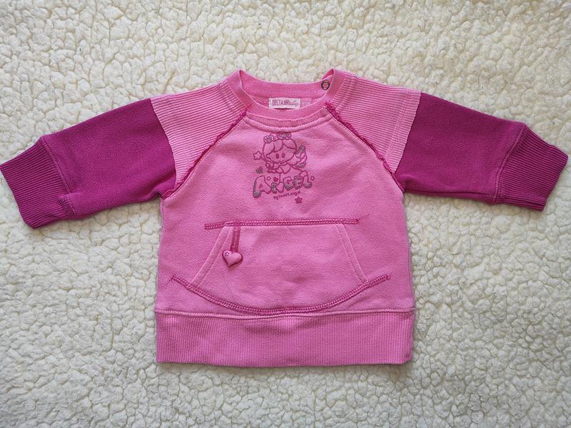 Кофта для дівчинки Стан: ідеальний На вік: 6-12 місяців На зріст: 68-80 см Сезон: Весна, осінь, зима Матеріал: 60% бавовна, 40% поліестер Фірма: Delta baby Виміри: Довжина: 30 см Ширина по грудях: 26 см Ширина по плечах: 25 см Довжина рукава від плеча: 19 см