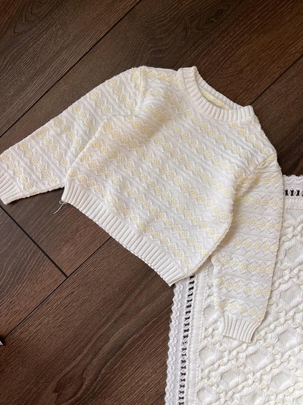 Вʼязана кофта джемпер білий з лимонним 0-3 міс