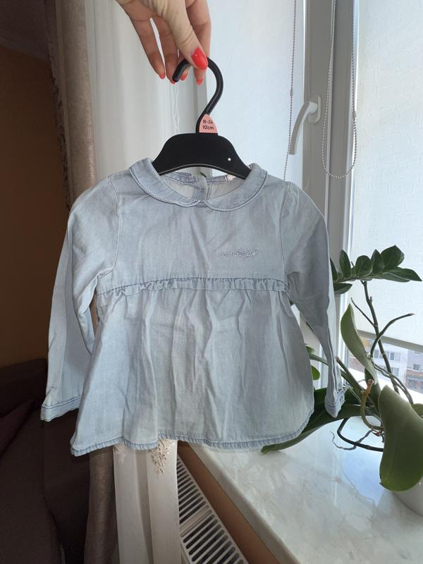 Сорочка, кофта з тоненького джинсу на дівчинку 1-1,5 роки. Ззаду на ґудзиках