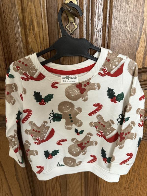 Тепленька кофтина з новорічним принтом на вік 6-9 міс,ріст 74. Нова тільки без бірки.