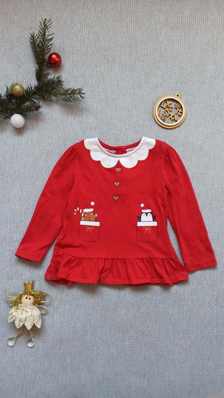 Дитячий новорічний реглан 9-12 міс c&a різдвяний лонгслів футболка з довгим рукавом для ді...