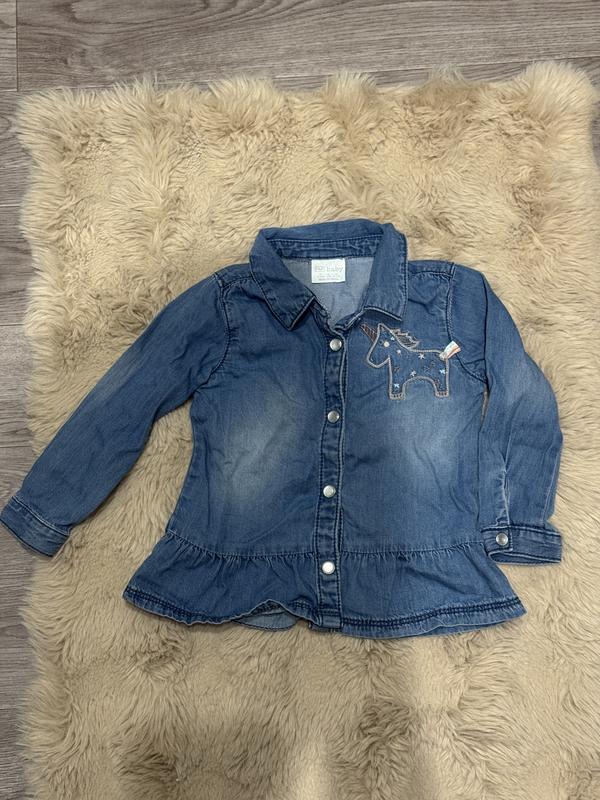 Рубашка джинсовая Размер 9-12 месяцев Замеры на фото
