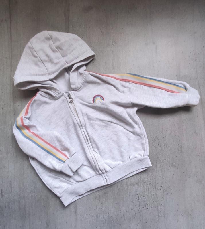сіренький утеплений худі на змійці, гарні різнокольорові лампаси на рукавах