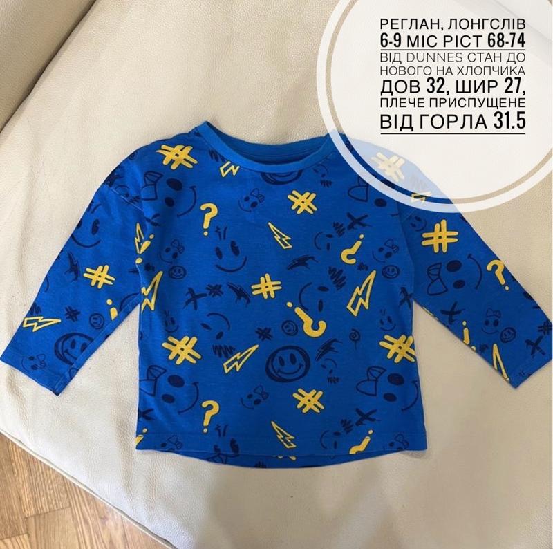 Реглан, лонгслів 6-9 міс ріст 68-74 від dunnes стан до нового на хлопчика дов 32, шир 27,...
