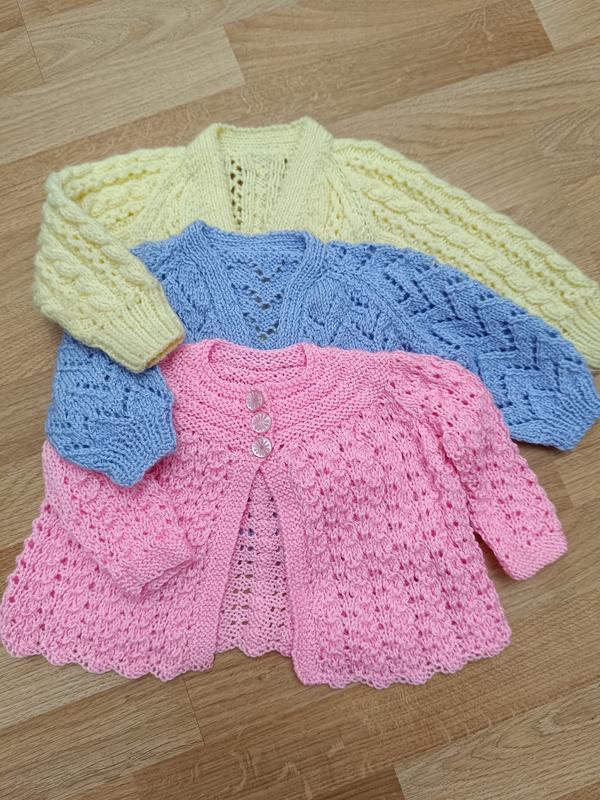 Кофти на маленьку дівчинку. Довжина 24см ,ширина під пахвами 27-28см. Додатково заміри зроблю.
