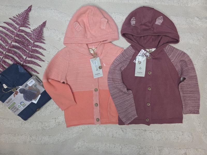 Є в трьох кольорах з ґудзиками та милим капюшоном з вушками ,дуже гарні. Незамінна річ в холодну пору року. Ціна: 170грн Розмір: 74-80