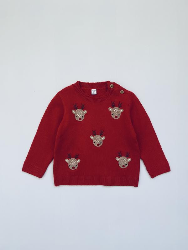 Дитячий новорічний светр з оленями m&s червоного кольору на 9-12 місяців