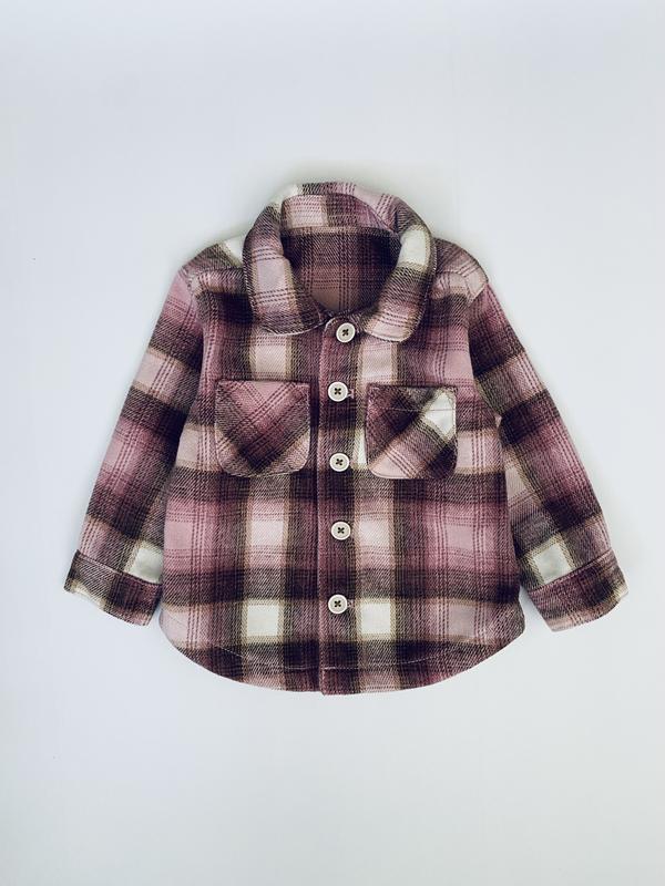 Дитяча тепла картата сорочка для дівчинки 1,5-2 роки | рожево-коричнева
